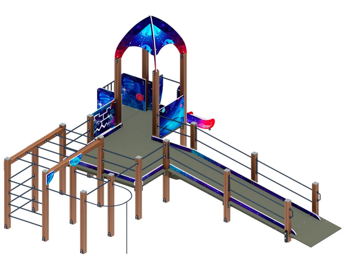 Комплекс оснащён металлическим скатом с высотой H=750 мм, который обеспечивает безопасность и комфорт во время использования.