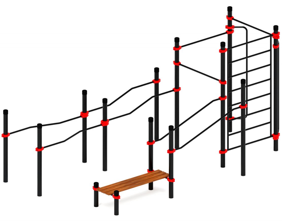 __Оборудование состоит из различных снарядов и тренажёров, которые позволяют выполнять разнообразные упражнения для развития силы, выносливости, гибкости и координации.__