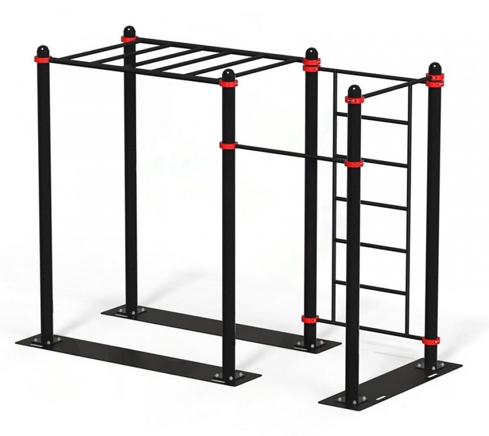 Спортивный комплекс — сборная металлическая конструкция, которая состоит из шести опорных металлических столбов, двух перекладин, рукохода и шведской стенки, и может быть установлена на любой ровной площадке.
