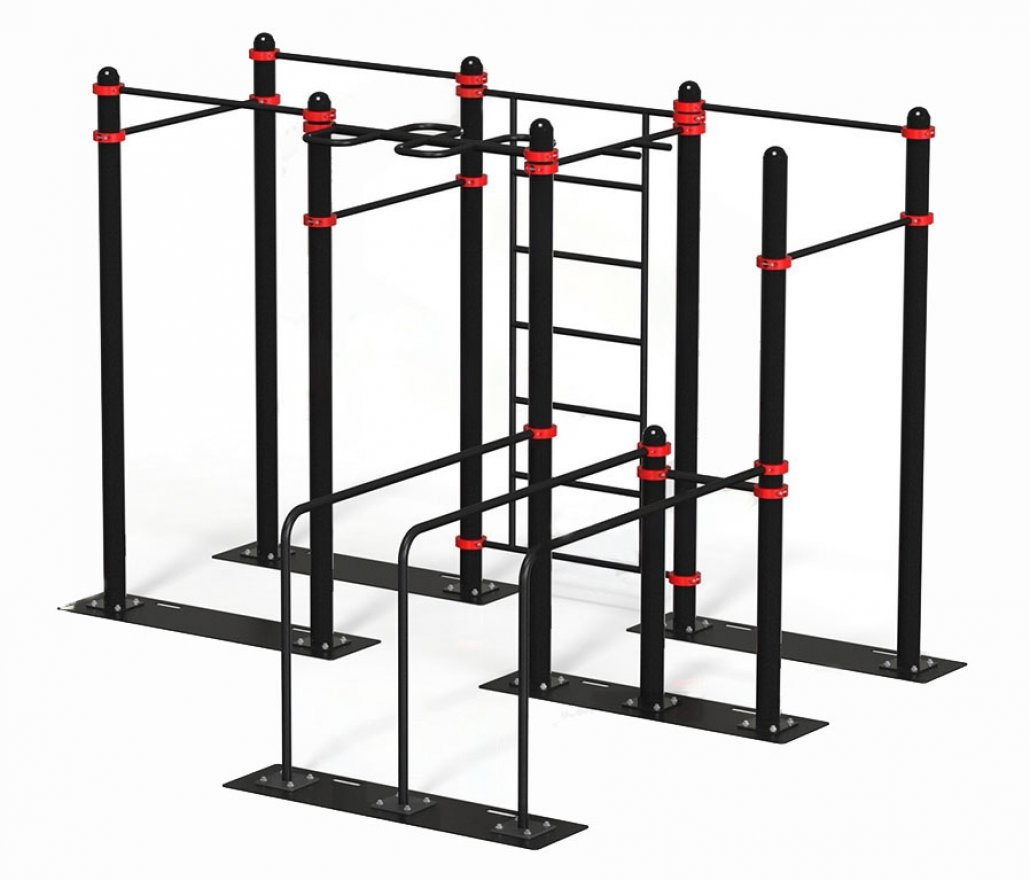 Спортивный комплекс — сборная металлическая конструкция, которая состоит из девяти опорных металлических столбов, шести перекладин, одной перекладины с возможностью выполнения упражнений «узким хватом» и рукохода. Также в комплект входят брусья для отжиманий, шведская стенка и дополнительные поручни для брусьев.
