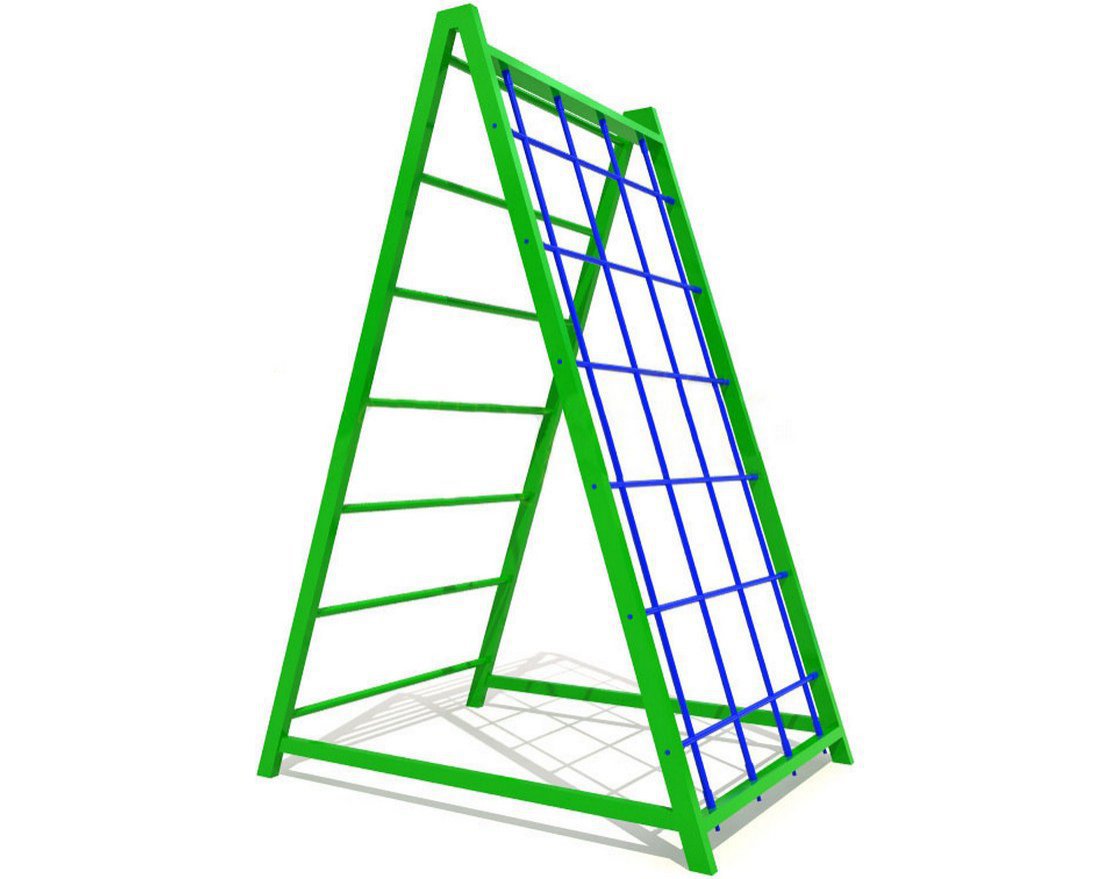 Небольшое, но функциональное дополнение к уличной игровой площадке — перевал с лестницей и лесенкой-«клеточкой». Этот компактный элемент превращает обычную детскую площадку в спортивную и предлагает малышам новые возможности для игр.
