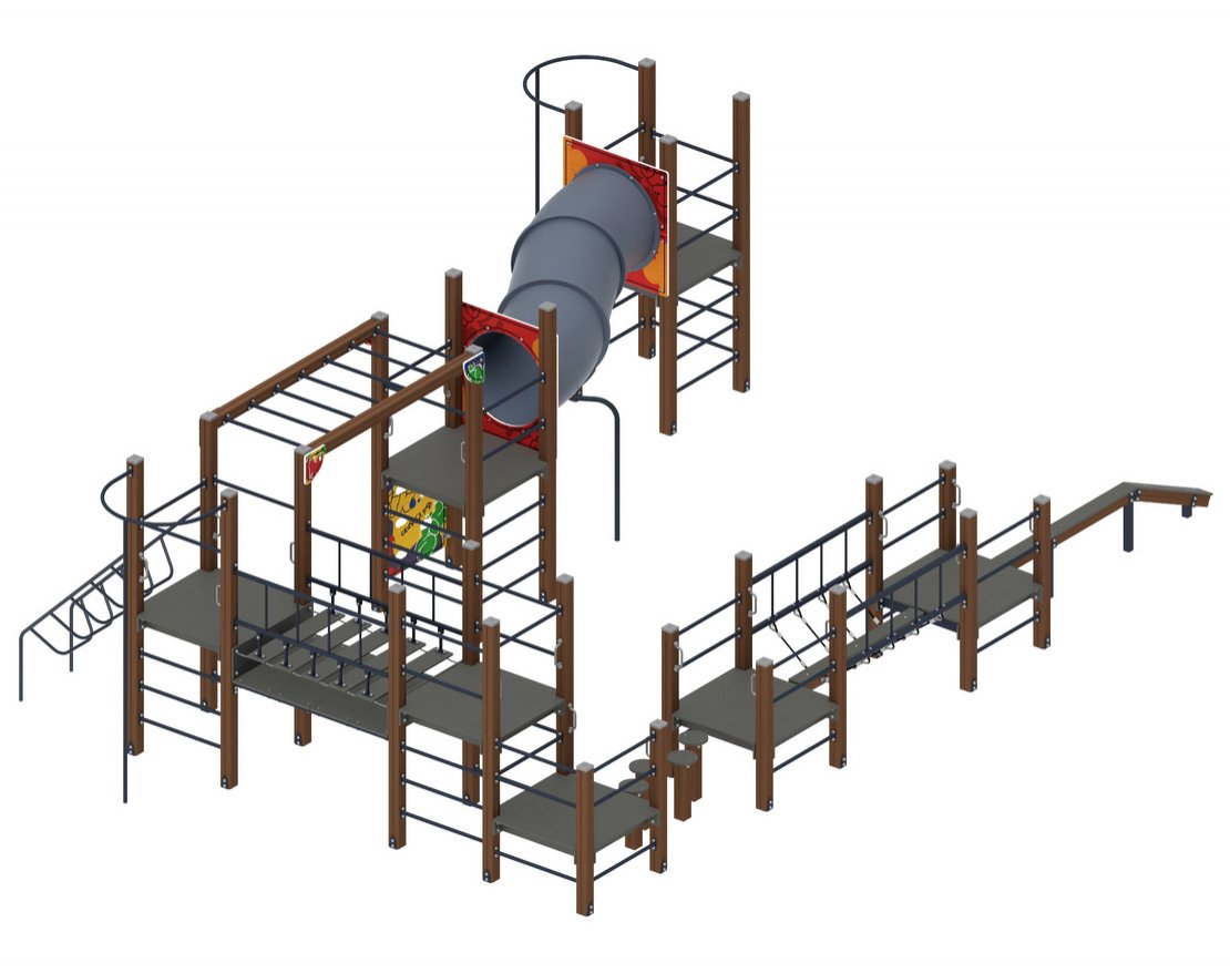 • В комплект входит: гимнастические кольца, шведская стенка, рукоход, гладиаторская сетка, туннель