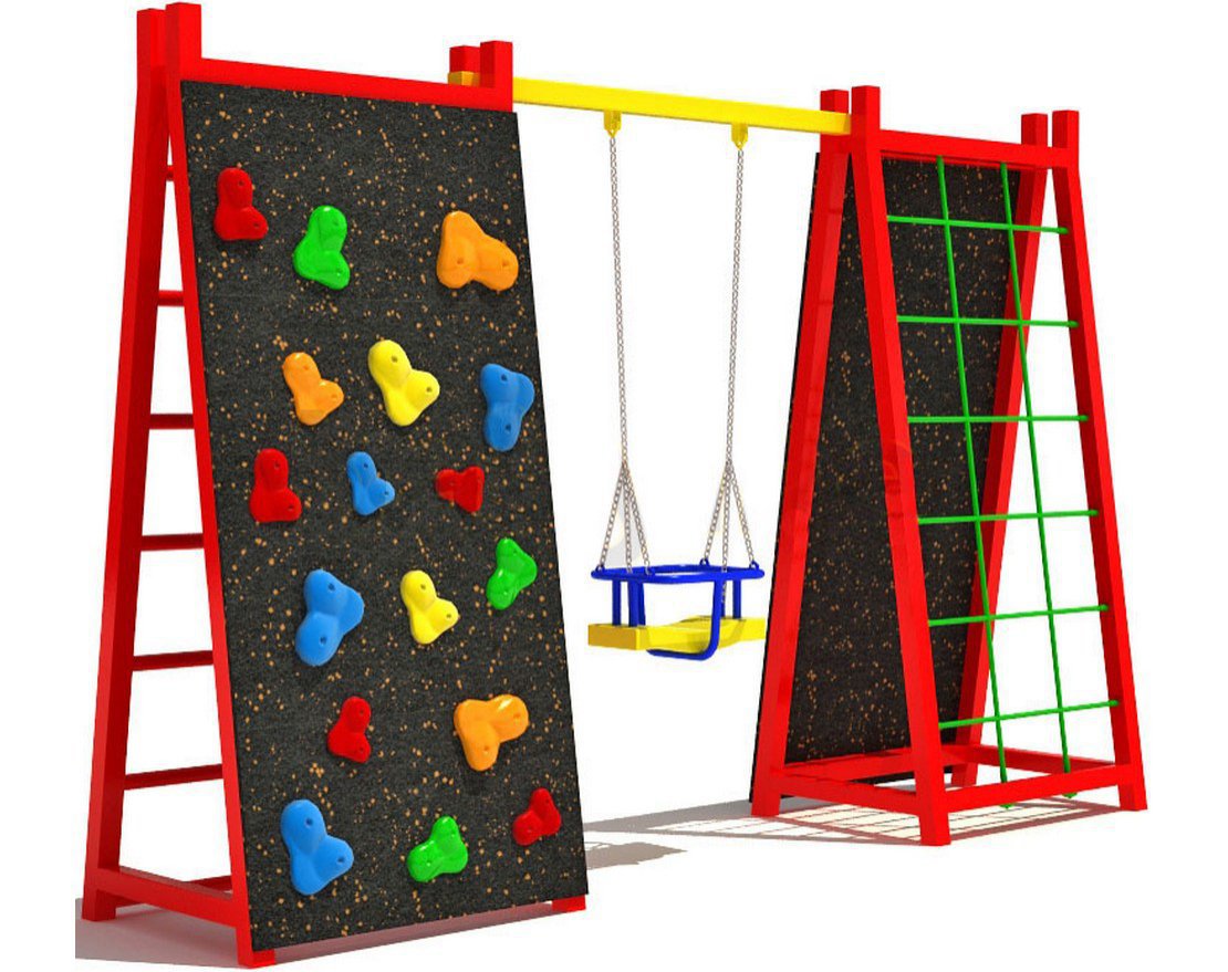 Для самых маленьких непосед предусмотрены детские качели с сидением, оборудованным защитой, благодаря чему ребёнок может легко держаться сам, пока родители его раскачивают. Яркое цветовое решение площадки с первого взгляда приковывает внимание, оживляет двор и может прекрасно соседствовать с красочными песочницами, пластиковыми горками и качелями-балансирами.