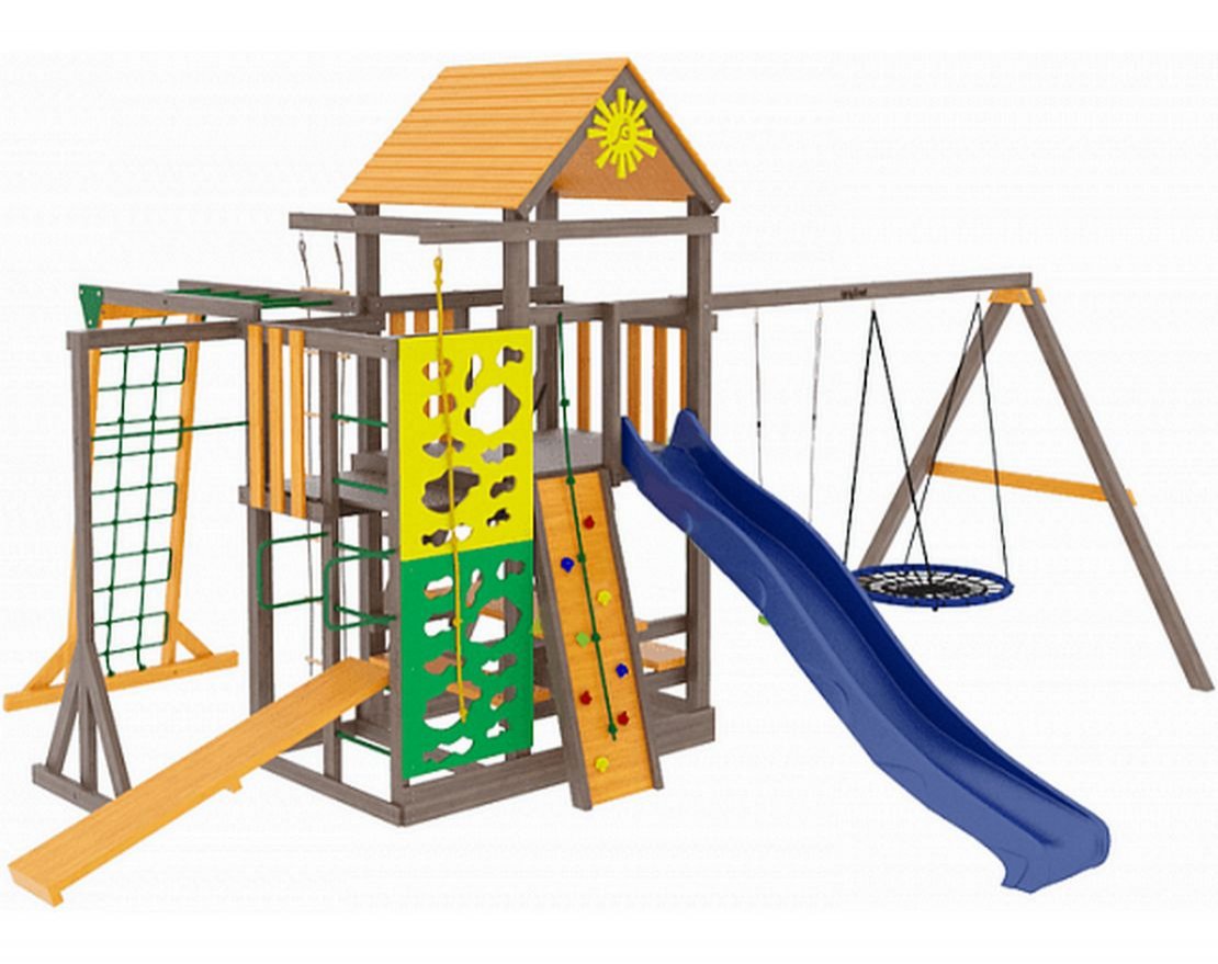 Этот игровой комплекс — отличный выбор для тех, кто хочет создать безопасное и интересное пространство для детей на улице, где они смогут активно проводить время и развиваться физически.