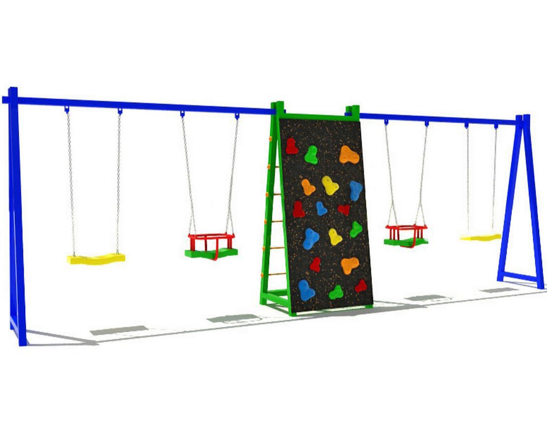 Такая спортивная площадка в комплексе с четырьмя качелями – настоящая находка для дворов и двориков. Очень компактный проект детской площадки занимает минимум места и даёт максимум возможностей, уличный игровой комплекс словно взрослеет вместе с ребёнком и будет интересна ему с 2 и до 16 лет, ведь здесь можно не только играть, но и серьёзно заниматься.