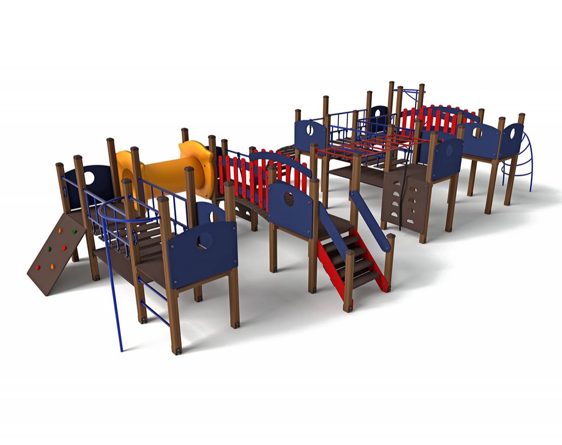 • В комплект входит: канат, рукоход, скалодром, лестница, кольцевой лаз, туннель