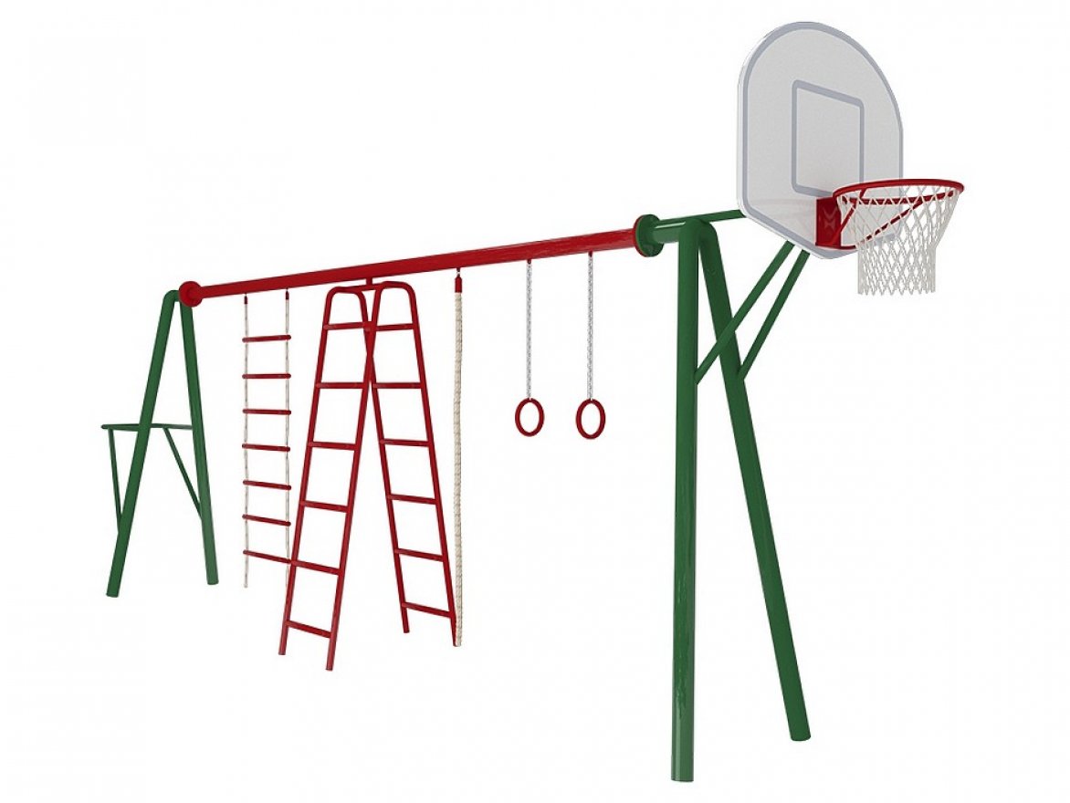 Комплекс представляет собой сборно-разборную спортивную конструкцию, которая устанавливается на улице и состоит из следующих элементов: