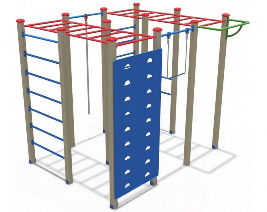 • В комплект входит: канат, турник, гимнастическая трапеция, шведская стенка, рукоход, скалодром