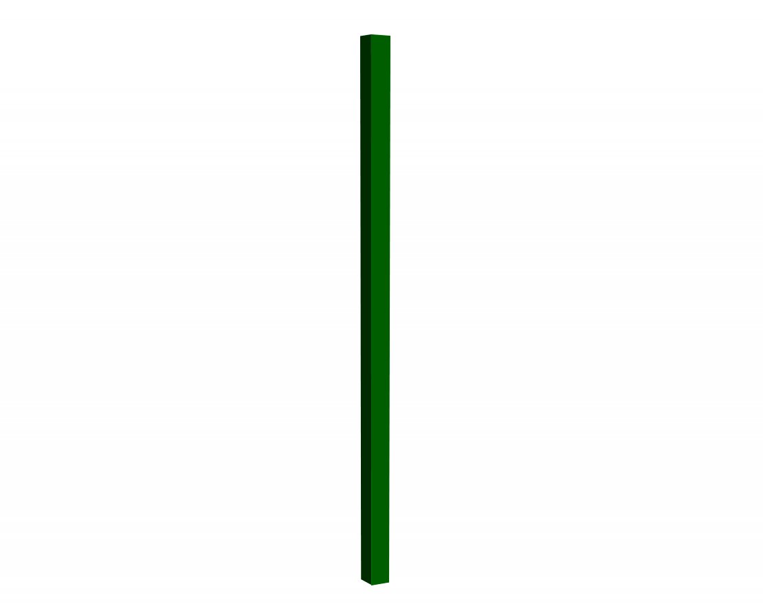 Столб изготавливается из металлической профильной трубы 40х40мм, окрашенной полимерно-порошковой краской, устойчивой к воздействию неблагоприятных погодных условий и ультрафиолета. Пластиковая заглушка в комплекте.