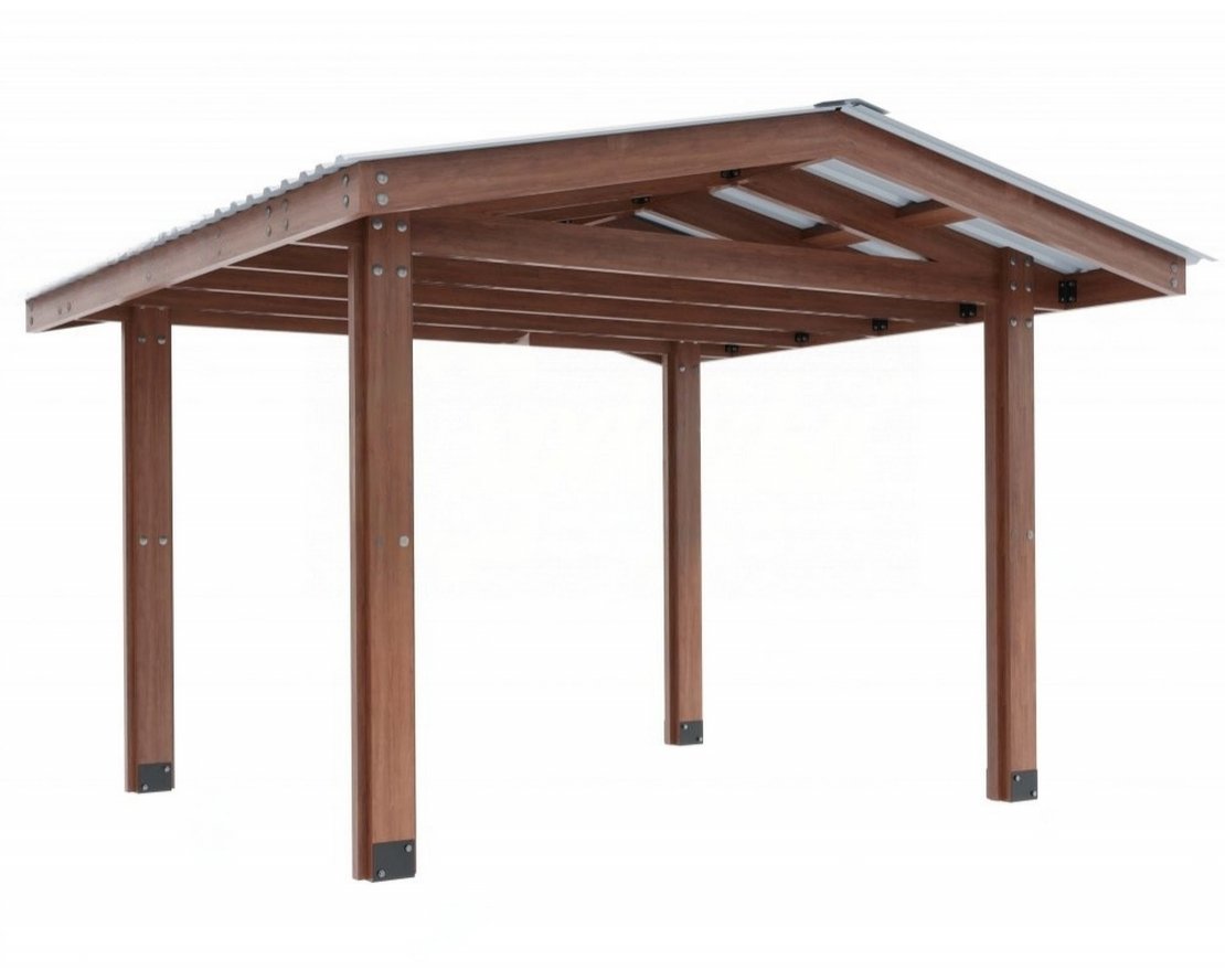 Деревянные элементы: Брус из хвойных пород древесины. Покрытие - атмосферостойкая лессирующая акриловая пропитка с лаком. Стандартные цвета: Палисандр, Махагон, Тик.