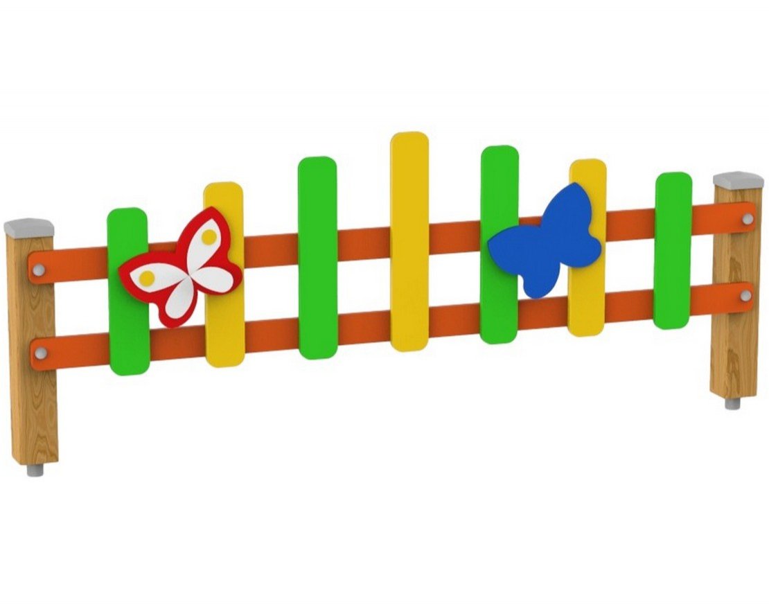 Ограждение с декором устанавливается на детских игровых площадках и используется в качестве ограждения газонов и цветочных клумб. Препятствует выходу детей за пределы безопасной зоны, защищает от заезда автомобилей, является частью оформления площадки и общего дизайна двора. Ограждение отлично подойдет для любой детской уличной площадки, расположенной во дворе, школе, детском саду или парке. Ограждение с декором представляет собой две стойки из бруса и планки с декоративными накладками.