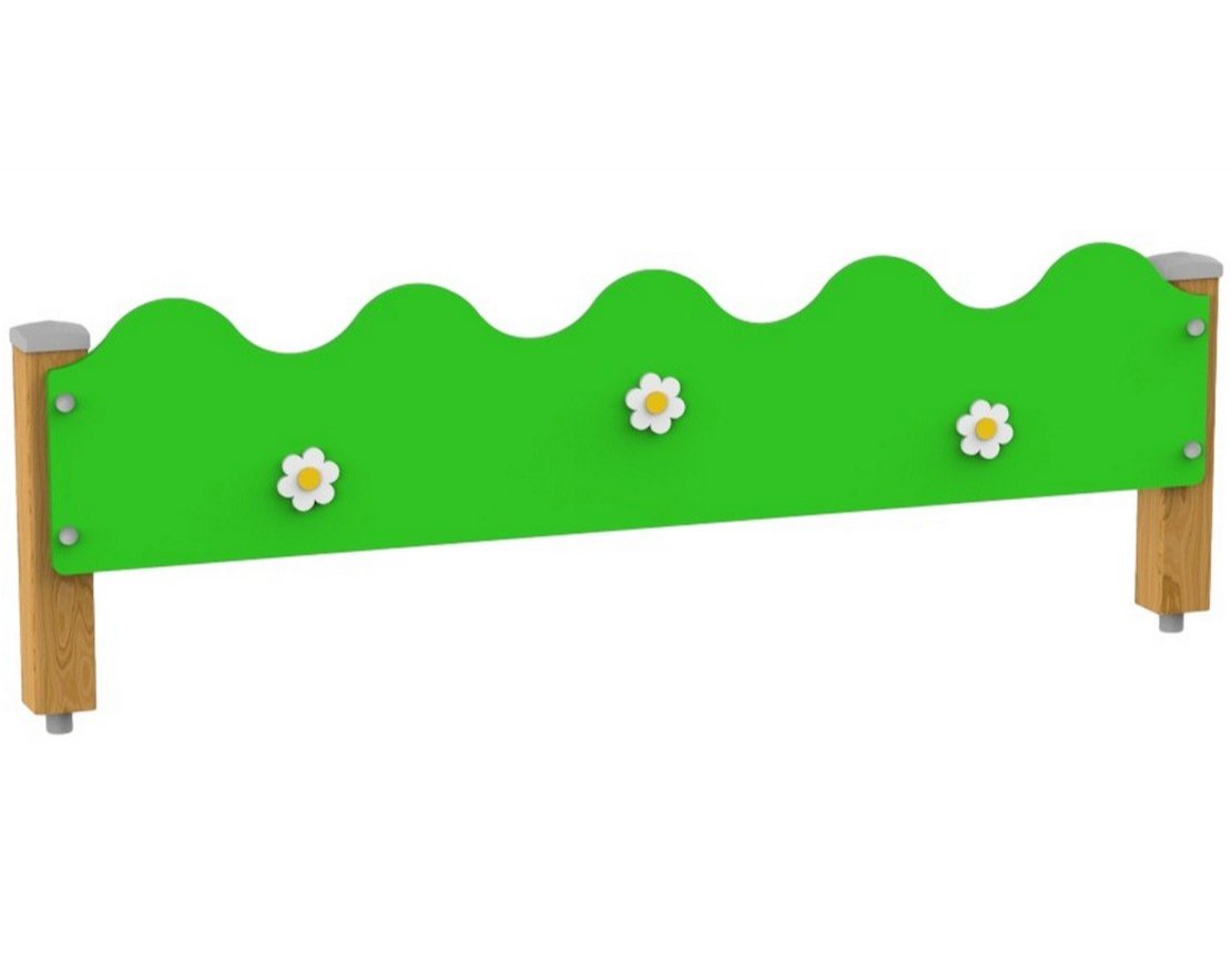 Ограждение «Полянка» устанавливается на детских игровых площадках и используется в качестве ограждения газонов и цветочных клумб. Препятствует выходу детей за пределы безопасной зоны, защищает от заезда автомобилей, является частью оформления площадки и общего дизайна двора. Ограждение отлично подойдет для любой детской уличной площадки, расположенной во дворе, школе, детском саду или парке. Ограждение «Полянка» представляет собой две стойки из бруса и панель с декоративными накладками.