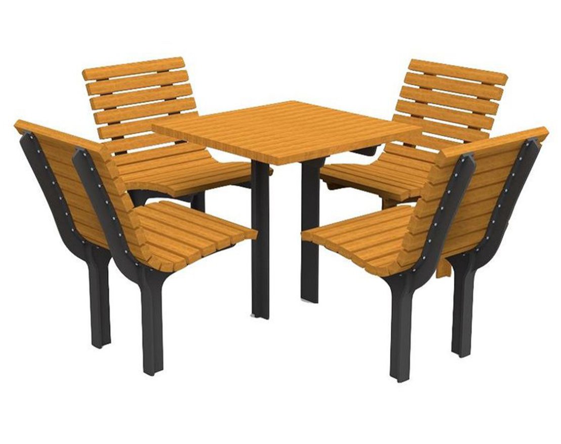 - Столешница, сиденье и спинка: Брус из хвойных пород древесины.