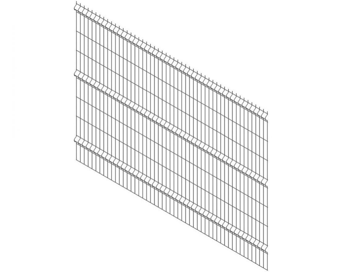Ограждение представляет собой сварную сетку, состоящую из оцинкованных стальных прутков диаметром 3 мм, которые соединены между собой в прямоугольные ячейки размером 55 х 235 мм. Ширина панели составляет 2700 мм. Покрытие выполнено из цинка и полимерно-порошковой краски, что обеспечивает долговечность и устойчивость к внешним воздействиям.
