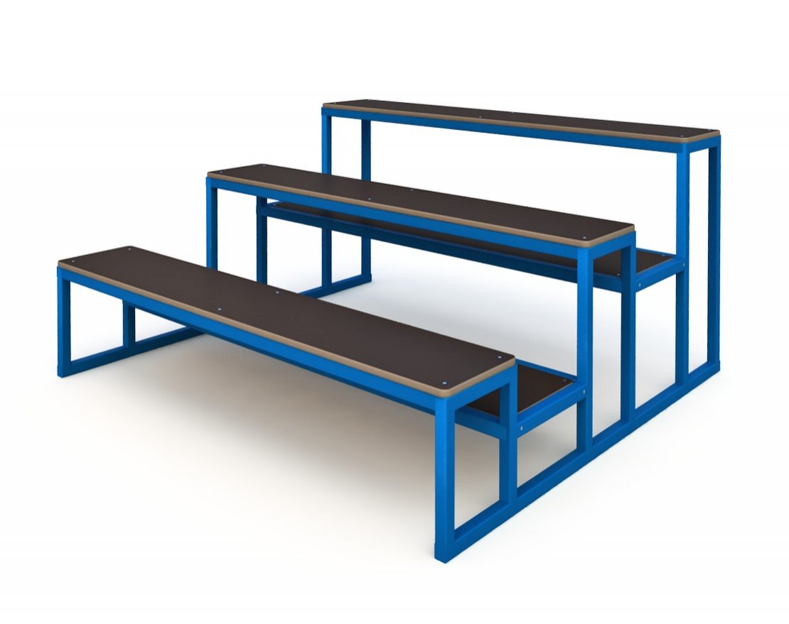Трибуна предназначена для использования на улице и подходит для детей от 7 до 16 лет. Она изготовлена из качественных материалов: металла, фанеры ФСФ и оцинкованного крепежа. Для установки трибуны требуется сварка и четыре закладные, заранее углублённые в грунт и забетонированные.