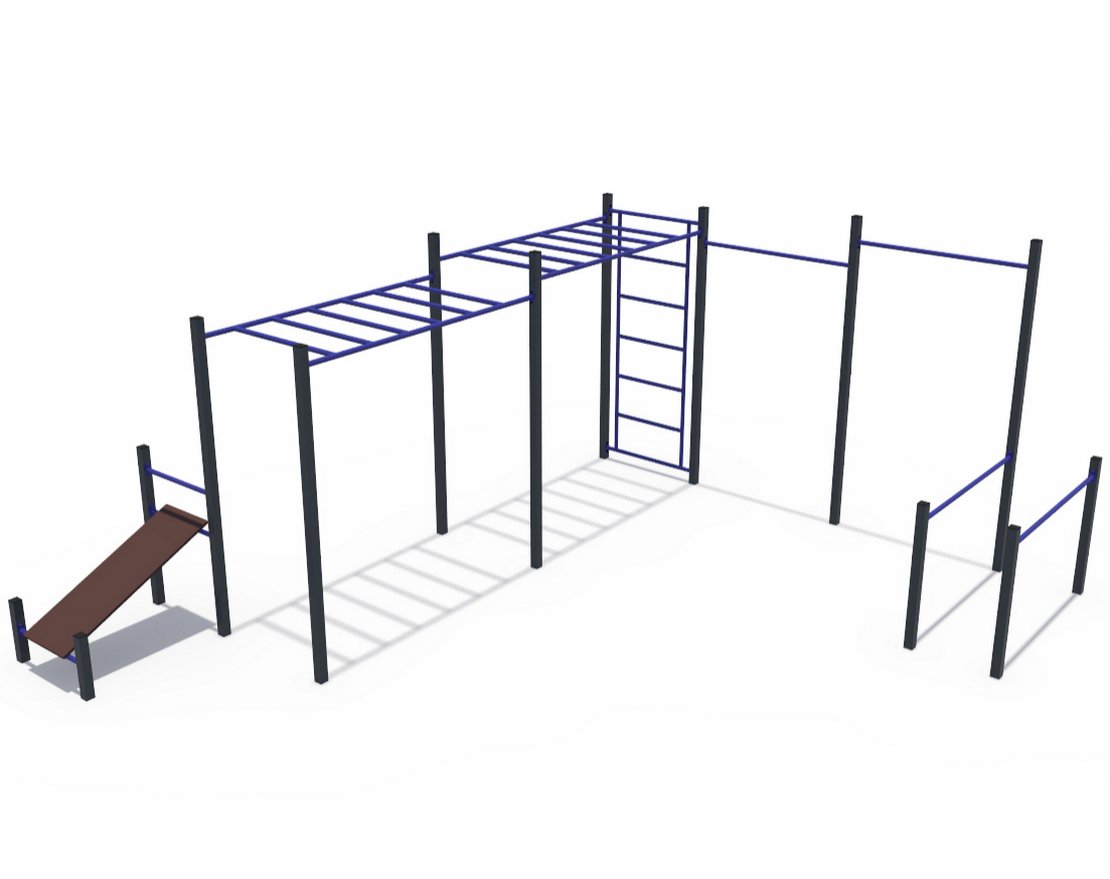 Спортивный комплекс изготовлен из профильных труб 60×60 мм и металлических перекладин диаметром 32, 42 мм и отвечает требованиям ГОСТов Р 52169–2012, Р 52301–2013 и Р 55675–2013, а также покрыт порошковой краской или подвергнут горячей оцинковке.