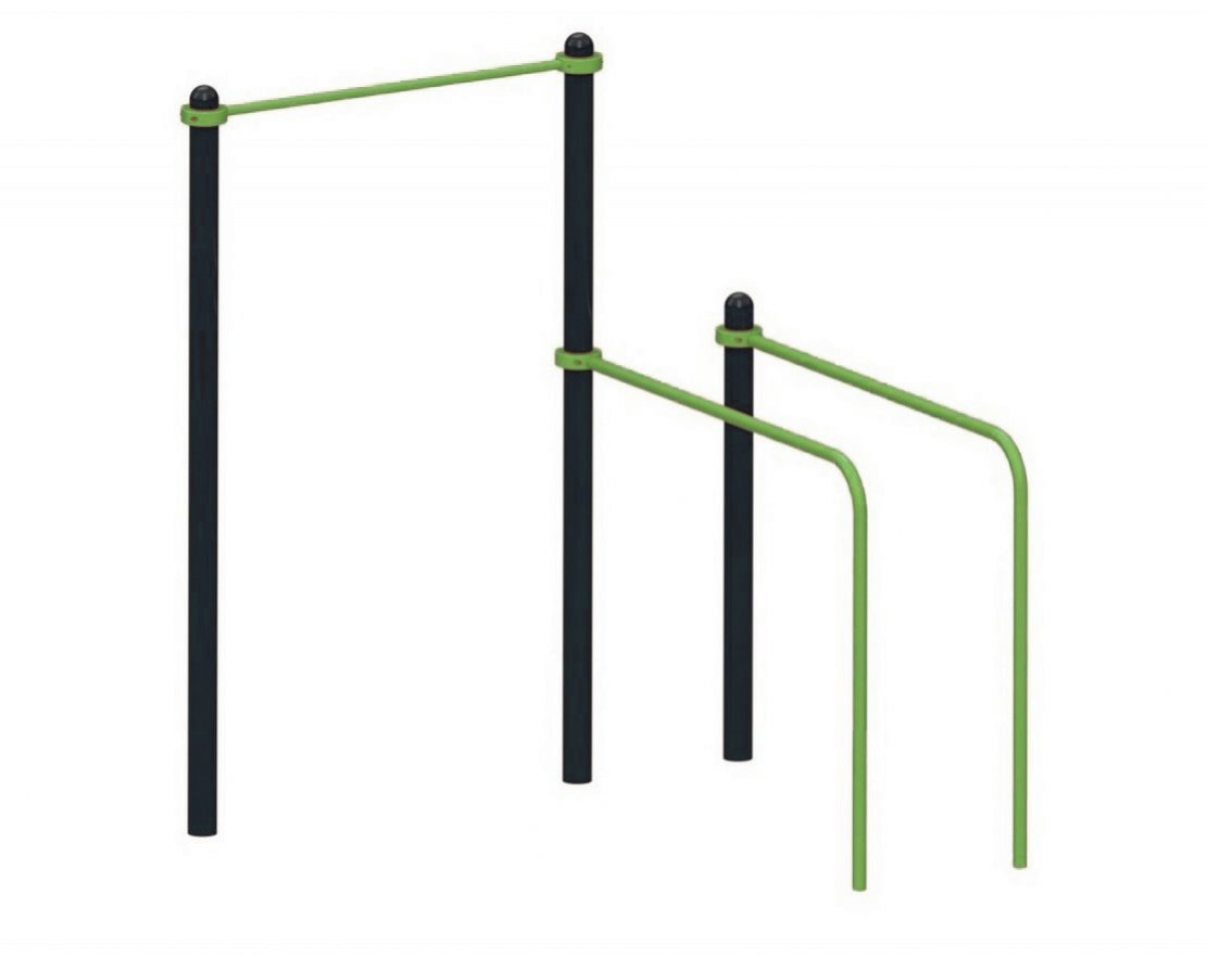 Элементы комплекса регулируются по высоте благодаря хомутам, поэтому заниматься на нём могут люди с разным ростом и уровнем подготовки. Изделия выполнены из прочной стали и покрыты порошковой краской. Это обеспечивает их долговечность и устойчивость к внешним воздействиям.