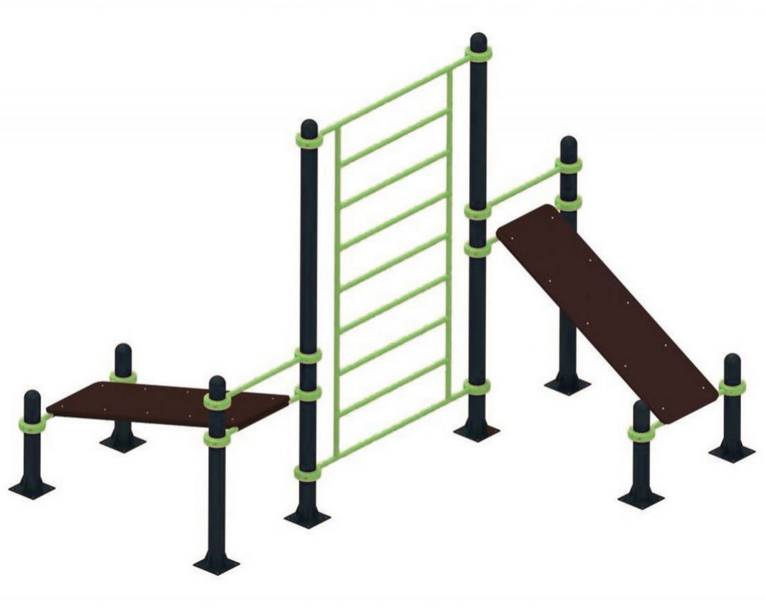 Компактный уличный спорткомплекс — это универсальное решение для поддержания физической формы и укрепления мышц. Он может быть установлен как на уличных спортивных площадках, так и на частных территориях.