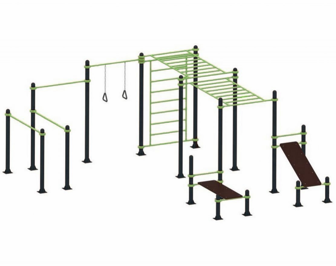 Кроме того, в комплексе предусмотрены гимнастические кольца, которые позволяют выполнять статические и динамические элементы. Они развивают физическую силу и координацию.