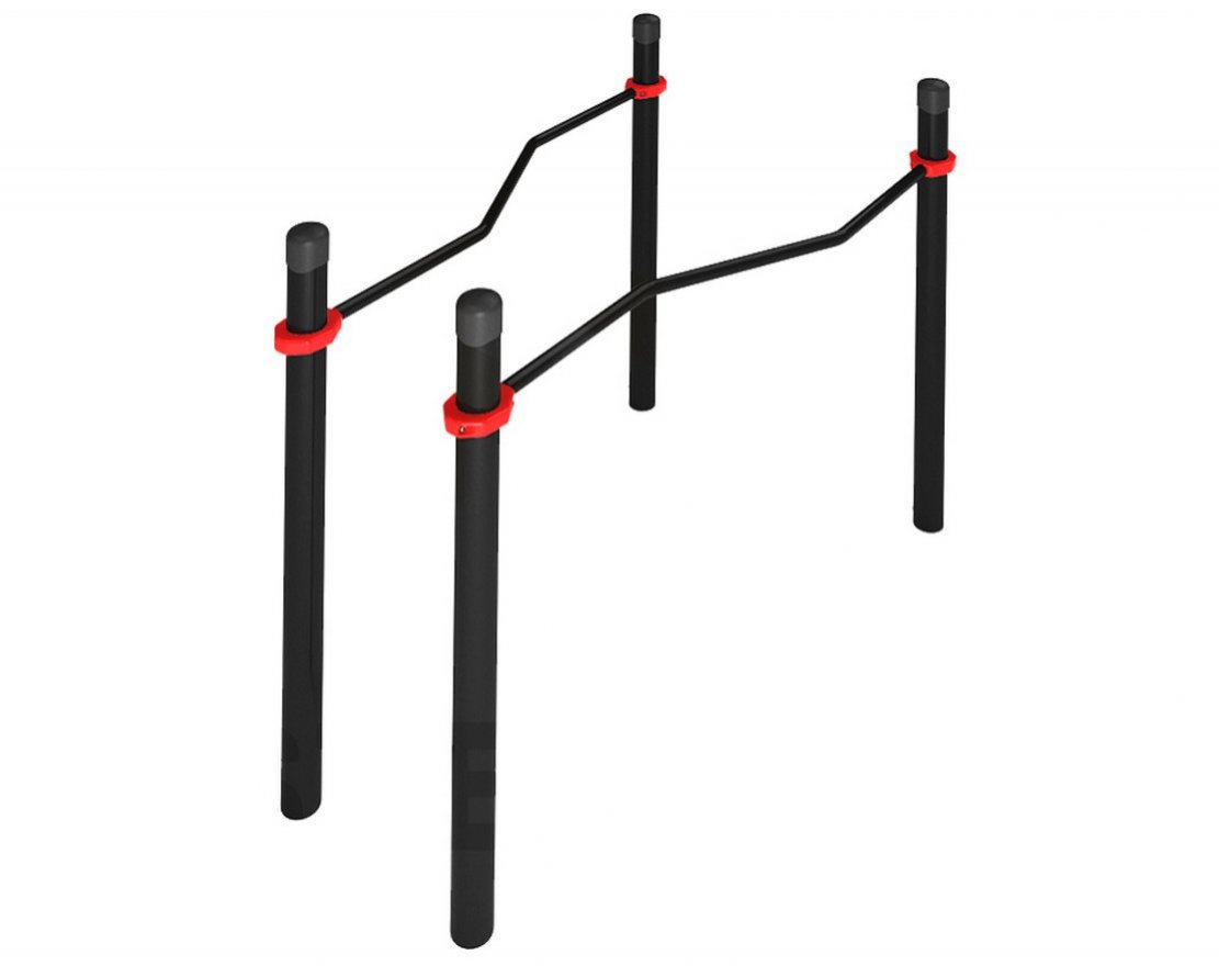 Комплекс включает в себя четыре опорных столба высотой 1,2 метра и два изогнутых бруска длиной 1,79 метра. Расстояние между опорными столбами с одной стороны составляет 60,8 см, а с другой — 100,8см. Брусья крепятся к столбам хомутами на высоте одного метра от основания. Общая длина комплекса составляет не более двух метров.