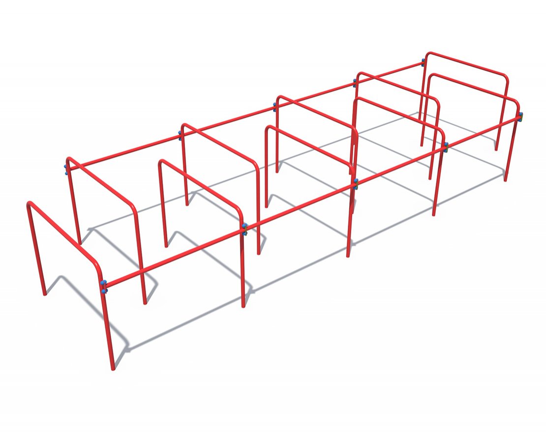 - Лабиринт изготовлен из металлических элементов сечением 32 миллиметра, которые окрашены порошковыми красками в заводских условиях, что обеспечивает их долговечность и стойкость к внешним воздействиям.