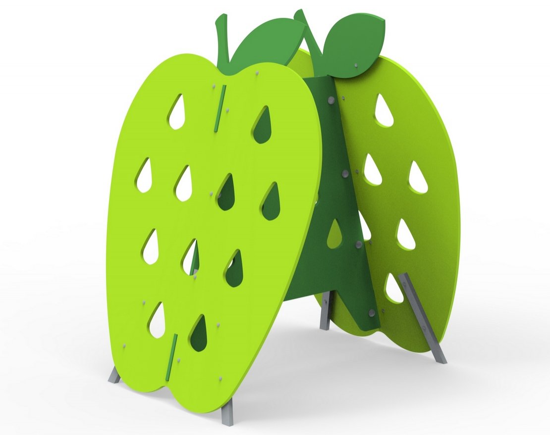 Уличный лаз «Яблоко 361.09.01 исп. 6» — это сборная конструкция из двух боковин и одной центральной панели, которая предназначена для установки на детских игровых площадках, в городских парках, на школьных и дошкольных территориях и в других местах, где важно обеспечить активный и безопасный отдых детей.