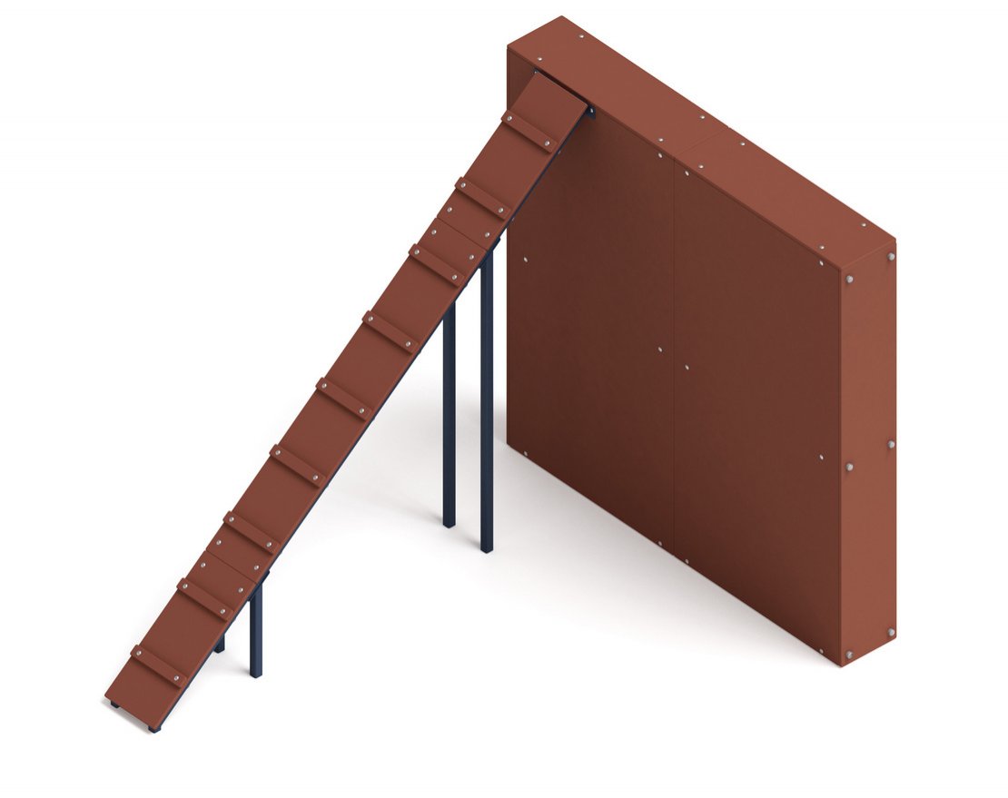 Этот элемент предназначен для организации спортивного и тренировочного пространства. Он представляет собой забор с наклонными досками, который может быть использован в различных видах спорта и активного отдыха.