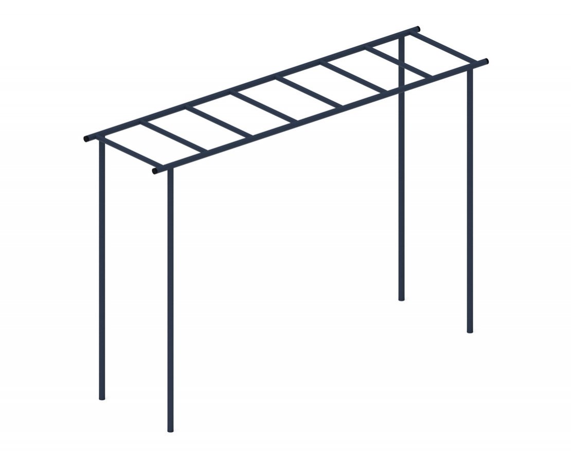 Представляет собой сварную конструкцию из труб диаметром 32 мм и 27мм. Перекладины расположены на расстоянии 300 мм друг от друга. Металл имеет плавные радиусы, тщательную обработку швов, покрыт порошковой краской в синий цвет.