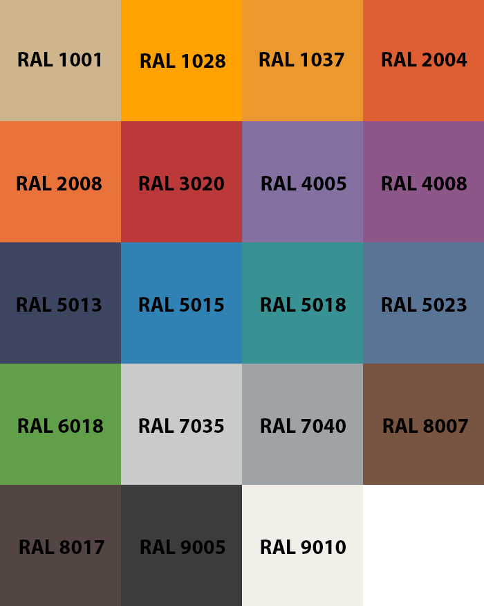 Изделие можетт быть изготовлено в различных цветах по каталогу RAL.