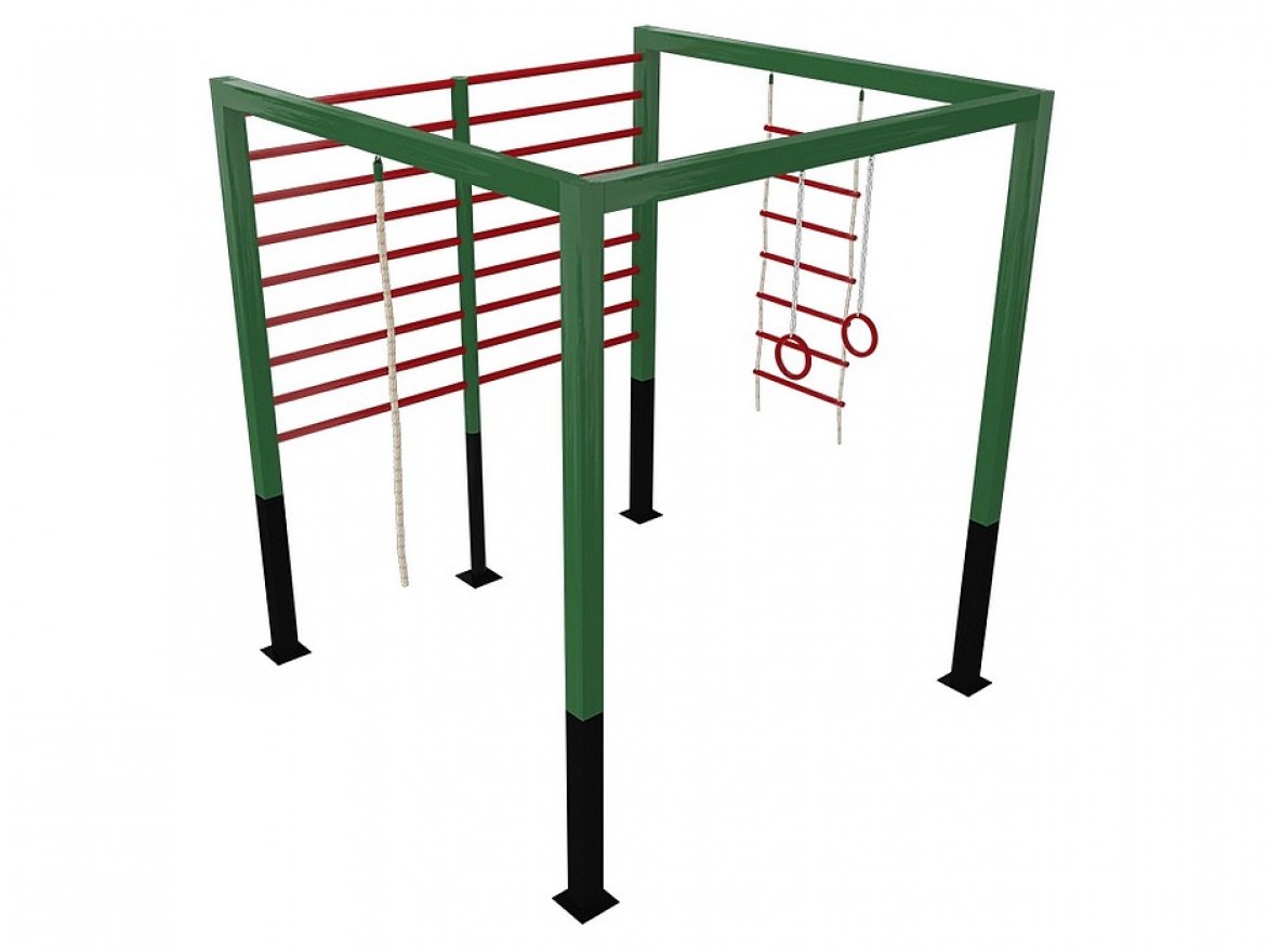 Комплекс представляет собой сборно-разборную спортивную конструкцию, которая устанавливается на улице и состоит из следующих элементов: