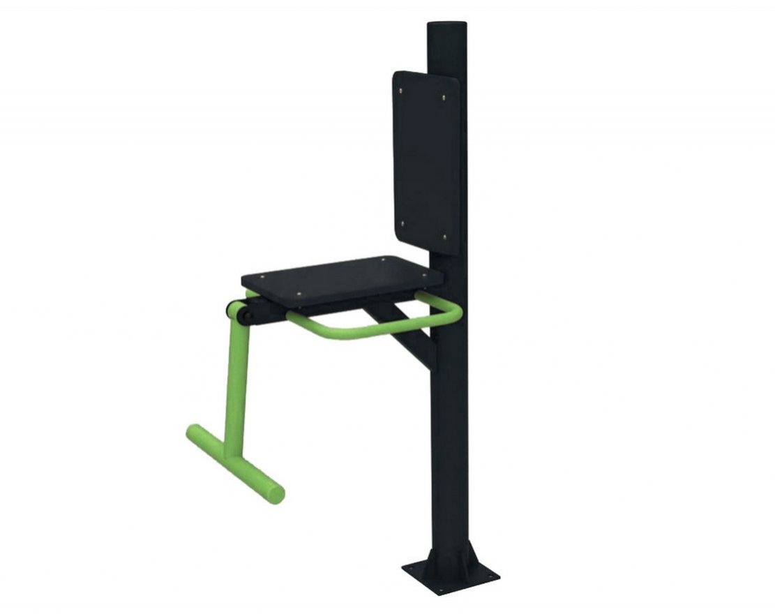 Тренажёр «Флекс» — это изделие из прочной стали с сиденьем из антивандального пластика. Предназначен для тренировки ног и укрепления верхней части бёдер.