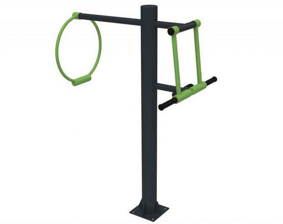 Уличный тренажер TORUDA «Гантели» 29 — это изделие из прочной стали с рифлёными рукоятками из ПВХ, которое предназначено для тренировки мышц рук и плеч. Тренажёр рассчитан на двух пользователей. Он может использоваться как стоящими людьми, так и теми, кто проходит реабилитацию или имеет ограниченные возможности, сидя в кресле-коляске.