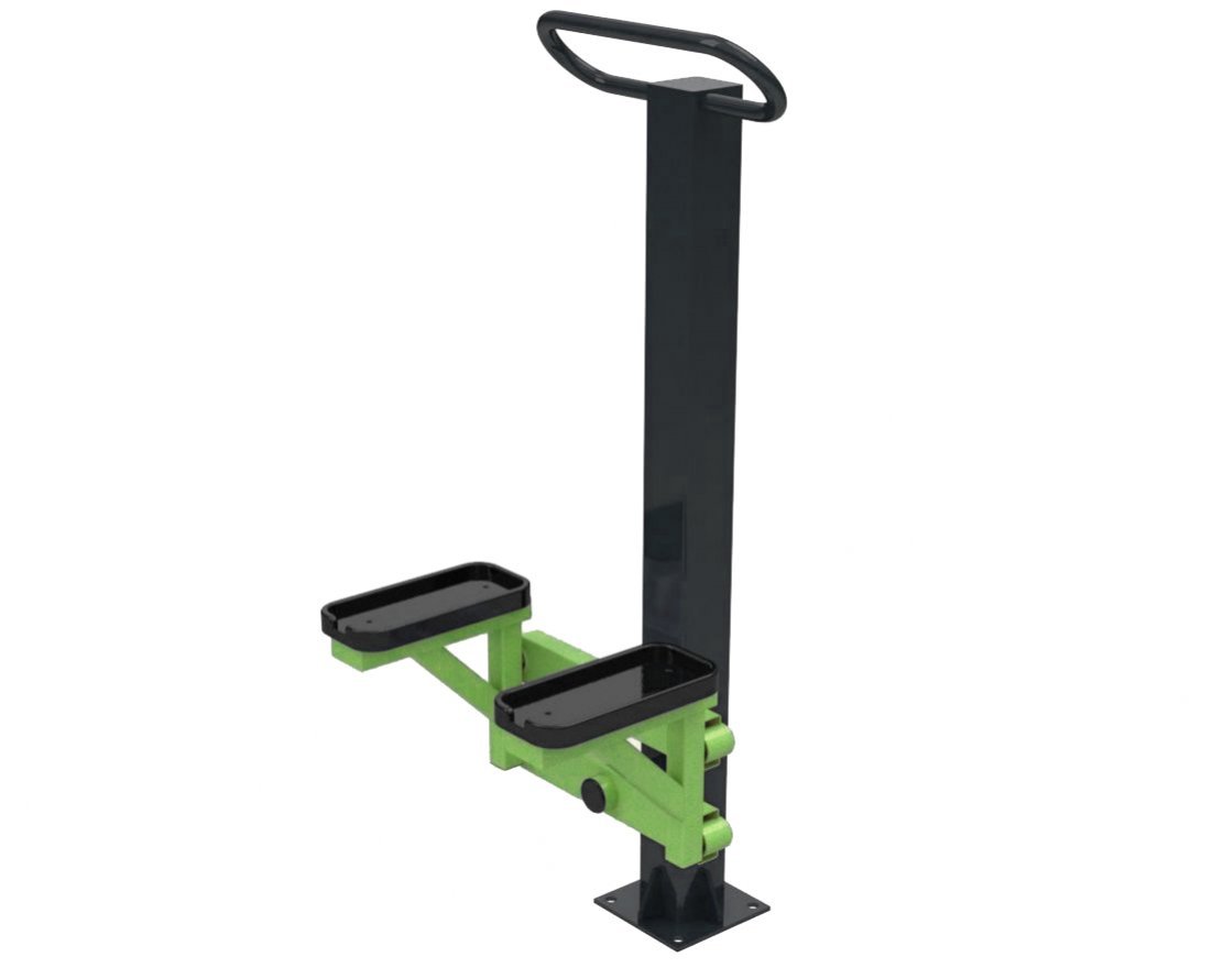 Уличный тренажёр «Степпер» одинарный подходит для тренировки икроножных, бедренных, четырёхглавых мышц и мышц ягодиц.