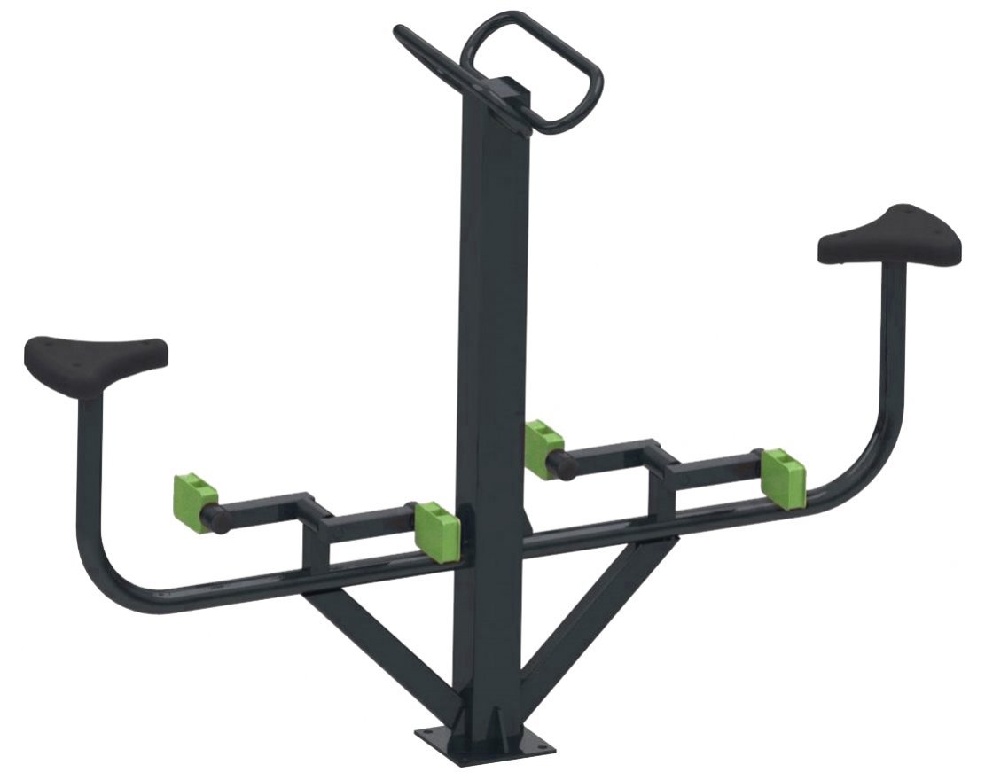 Тренажёр для коррекции фигуры и тренировки суставов, выполненный в виде прочной металлической конструкции, устанавливается на открытых спортивных площадках, во дворах и на школьных территориях. Он предназначен для занятий на свежем воздухе и подходит для двух пользователей одновременно.