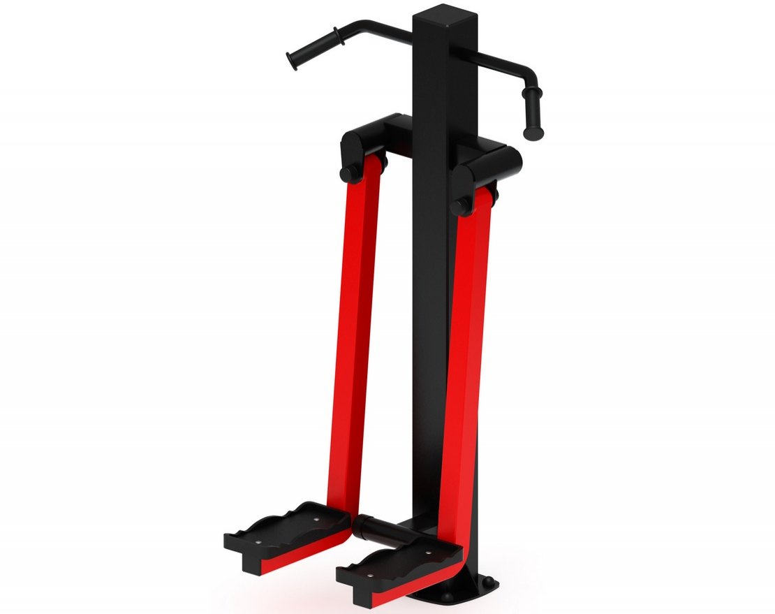 Спортивная площадка с яркими красными элементами станет украшением любого двора, парка или школьного двора. Чёрный цвет металлических элементов и тренажёров добавит контраста и строгости. Закладные детали для установки в 4 точках обеспечат надёжную фиксацию тренажёра на площадке.