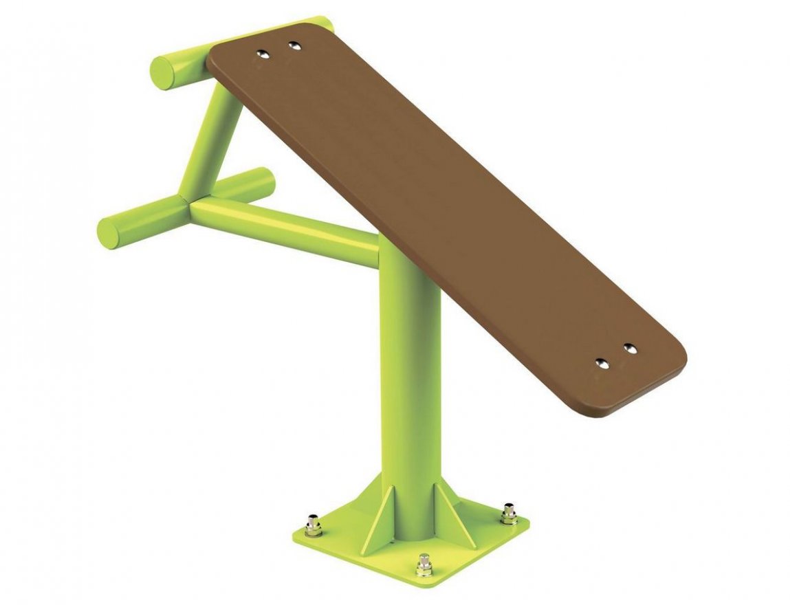 Тренажёр Fix-1701 для тренировки мышц брюшного пресса — это конструкция из рамы, площадки с наклоном и закладной. Предназначен для занятий на открытом воздухе.