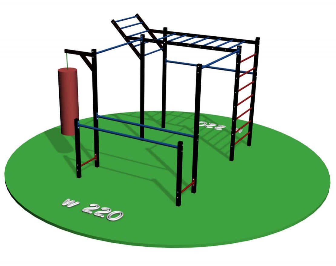 Workout w220 — это многофункциональный уличный спортивный комплекс, который можно установить как на даче, так и на придомовой территории частного дома или в парке. Комплекс предназначен для людей, которые хотят поддерживать хорошую физическую форму, но не имеют возможности посещать тренажёрный зал.
